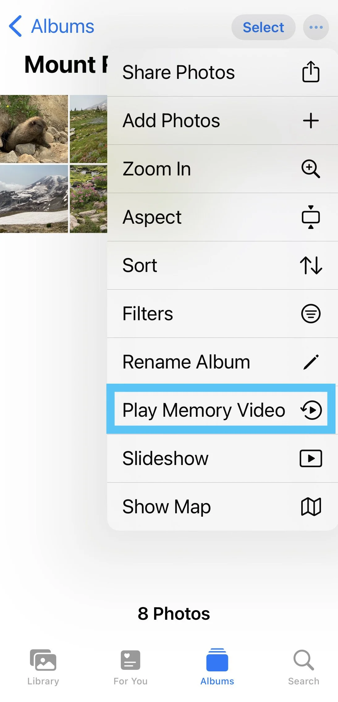 3. Tap PLAY MEMORY VIDEO to automatically create a video of your photos.